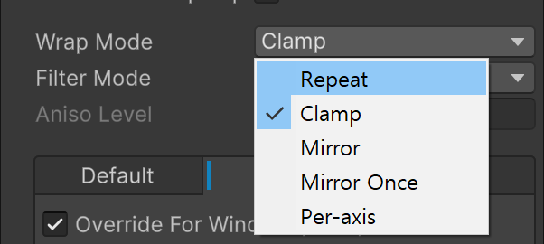 왜냐하면 Wrap Mode를 Reapeat로 바꾸고