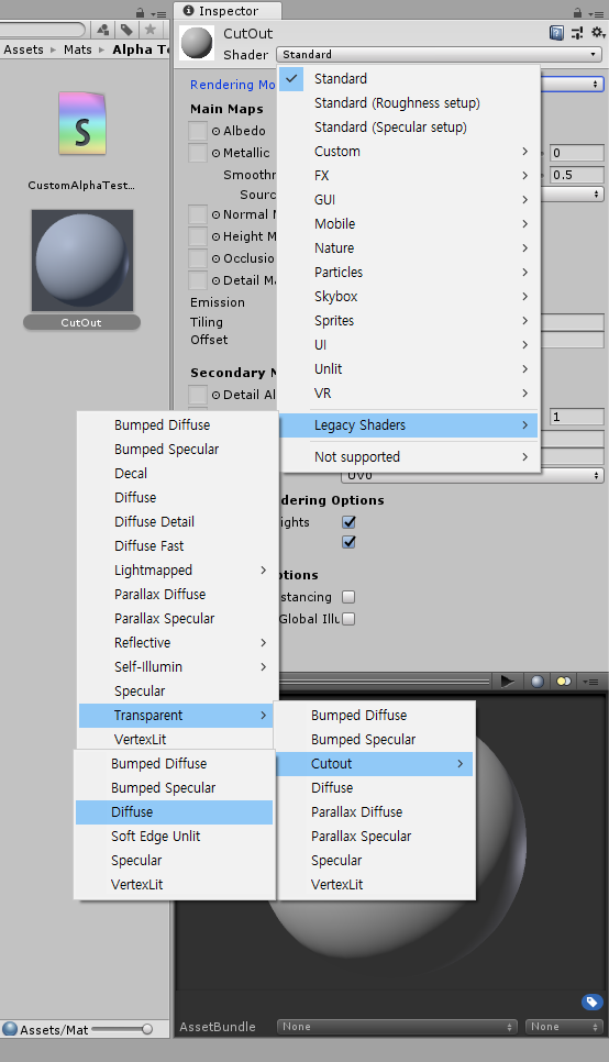 //알파 테스팅 쉐이더에서 그림자를 그리기 위해 Fallback 위치에서 Cutout 계열의 쉐이더를 사용해야한다.